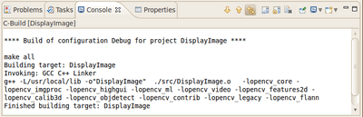 So, now we have an executable ready to run. If we were to use the Terminal, we would probably do something like: @code{.bash} cd <DisplayImage_directory> cd src ./DisplayImage ../images/HappyLittleFish.png @endcode Assuming that the image to use as the argument would be located in <DisplayImage_directory>/images/HappyLittleFish.png. We can still do this, but let's do it from Eclipse: